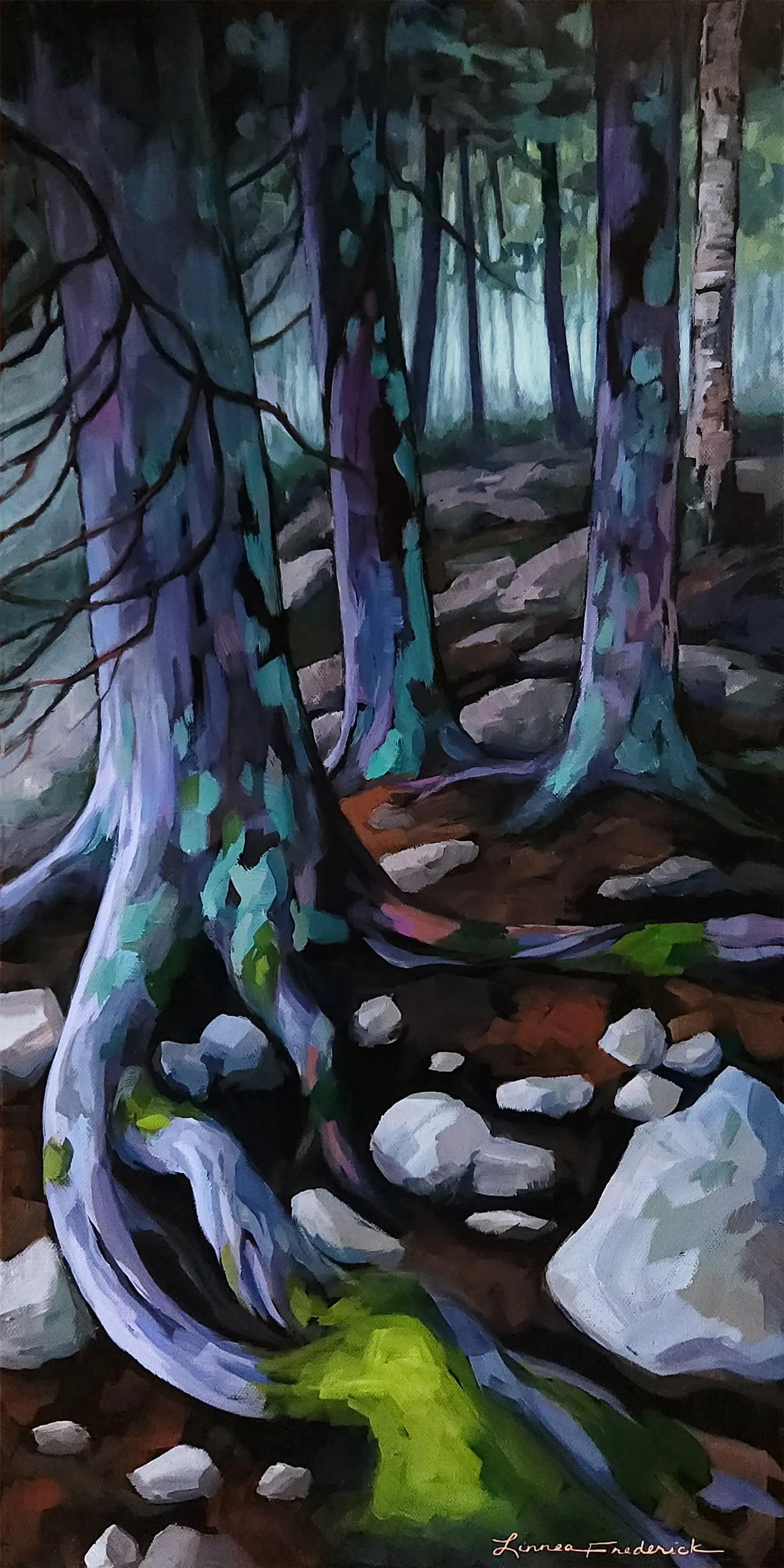 "Cave Point Cedars" 12 x 24 Acrylic on stretched canvas